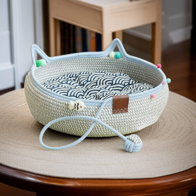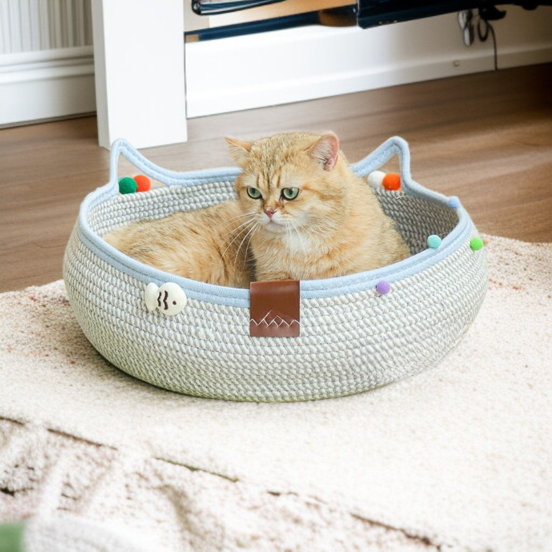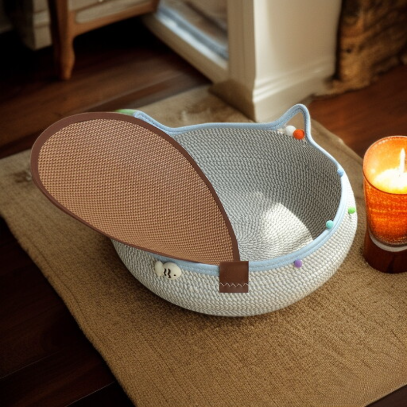 ● 핸드메이드 라탄 소재로 제작되어 내구성이 뛰어나며, 사계절 내내 쾌적하게 사용할 수 있는 고양이 전용 펫 하우스입니다. ● 스크래쳐 볼과 하우스가 일체형으로 구성되어 있어 놀이와 휴식을 한 번에 해결할 수 있어 반려묘의 만족도를 높여줍니다. ● 세탁이 가능해 위생적으로 관리할 수 있으며, 고급스러운 디자인으로 집안 어디에 두어도 인테리어 효과가 뛰어납니다.